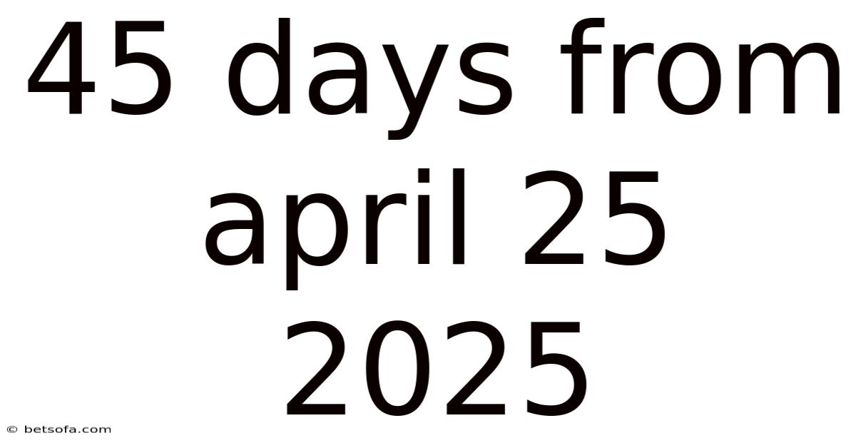 In our fast-paced, schedule-driven world, the simple act of counting days forward or backward from a specific date is a fundamental skill with profound real-world consequences. The query "45 days from April 25, 2025" is a perfect example of this everyday necessity. That said, at its core, this calculation is a specific instance of date arithmetic—the process of adding or subtracting a defined number of days to a given calendar date to find a resulting date. This article will serve as a definitive guide, not only revealing the exact date but also equipping you with the knowledge, methods, and contextual understanding to perform such calculations confidently and avoid common pitfalls. Whether you are planning a project timeline, calculating a notice period, managing a financial cycle, or simply counting down to an event, accurately determining a future date is essential. Mastering this skill bridges the gap between a simple question and a deeper comprehension of our calendar system The details matter here..