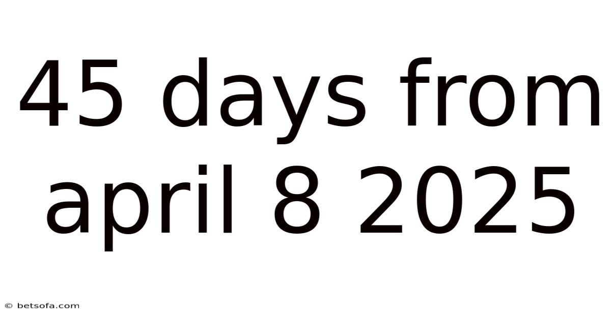 When you hear the phrase “45 days from April 8 2025,” you might picture a simple calendar addition, but the reality is a little richer. Worth adding: whether you are planning a project deadline, scheduling a travel itinerary, or simply curious about the date that lands exactly 45 days after a given day, understanding how to calculate it correctly can save you confusion and keep your plans on track. In this article we break down the process of adding 45 days to April 8 2025, explore why the result matters in real‑world contexts, and provide step‑by‑step guidance, examples, and common pitfalls. By the end, you’ll know that May 23 2025 is the date you’re looking for—and you’ll have a reliable method to apply to any similar date‑math problem.