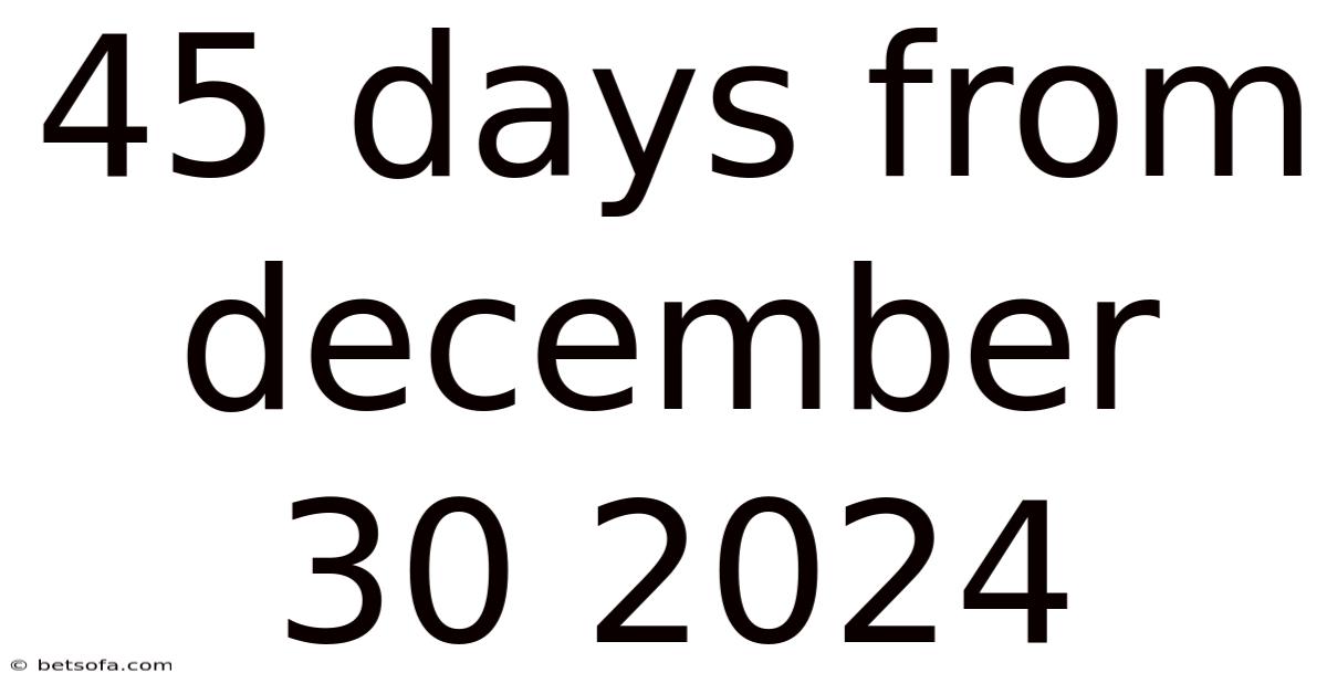 Understanding how to calculate a specific number of days from a given date is a fundamental skill with surprising relevance in our daily lives. Whether you're planning a project timeline, managing a subscription trial, calculating an interest period, or simply marking a personal milestone, accurately determining a future date eliminates ambiguity and ensures precision. The query "45 days from December 30, 2024" is a perfect example of this practical need. At its core, this calculation involves adding a fixed duration of 45 calendar days to a specific start date, navigating the varying lengths of months and the occasional leap year. The result is not just a number on a calendar; it's a concrete point in time—February 13, 2025—that serves as a deadline, an anniversary, or a target. This article will demystify the process, exploring the mechanics of date arithmetic, the contextual factors that influence it, and the broader importance of mastering this simple yet critical task.