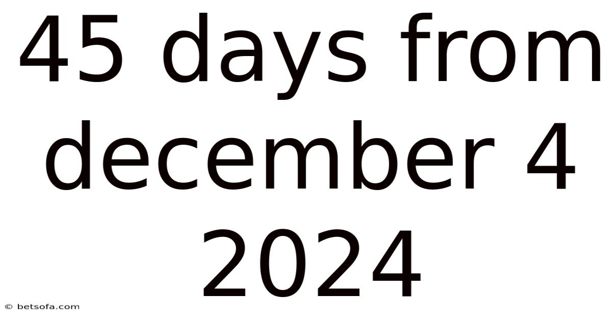 When you ask, “What is 45 days from December 4, 2024?So naturally, ”, the answer is not just a simple number—it’s a specific date that can shape planning, deadlines, and personal milestones. In practice, knowing how to calculate future dates accurately is a useful skill, whether you’re scheduling a project, planning a vacation, or simply keeping track of important events. In this article, we’ll determine the exact date that falls 45 days after December 4, 2024, explore the practical applications of this calculation, and provide tools and tips for doing similar date arithmetic in the future. By the end, you’ll have a clear understanding of how to work through date calculations and why they matter in everyday life.