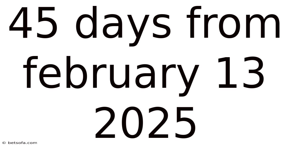 Below is a clear, step‑by‑step method for finding 45 days from February 13 2025. You can apply the same procedure to any start date and interval.