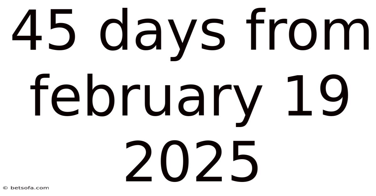 In short, the answer to the original query is clear: 45 days after February 19, 2025 lands on April 5, 2025. Armed with the methods, tools, and cautionary notes outlined above, you can apply this knowledge to any similar date‑based challenge, ensuring that every deadline, appointment, and milestone arrives exactly when it should Simple, but easy to overlook..