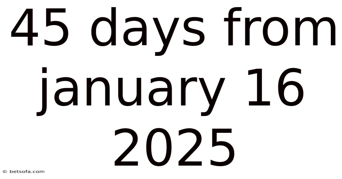 When we look ahead on the calendar, certain dates hold particular significance for planning, deadlines, and future milestones. Still, understanding how to calculate future dates accurately is an essential skill in our time-driven world, where missing a deadline by even a single day can have significant consequences. On top of that, the calculation of "45 days from January 16, 2025" represents more than just a simple mathematical exercise; it's a crucial reference point for scheduling, project management, and personal organization. This article will explore the date that falls 45 days after January 16, 2025, break down the calculation process, examine its practical applications, and address common misconceptions about date calculations that many people encounter That's the whole idea..