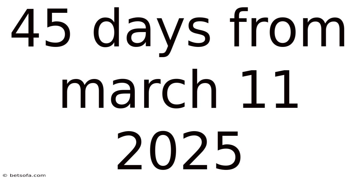If you're wondering what date falls exactly 45 days after March 11, 2025, you're not alone. Knowing how to calculate future dates accurately is a valuable skill, especially in professional and personal planning contexts. This type of date calculation is commonly needed for planning events, tracking deadlines, or organizing travel schedules. Day to day, in this article, we'll explore how to determine the exact date 45 days from March 11, 2025, and explain the reasoning behind the calculation. We'll also look at why this skill is useful and how you can apply it in everyday situations.
