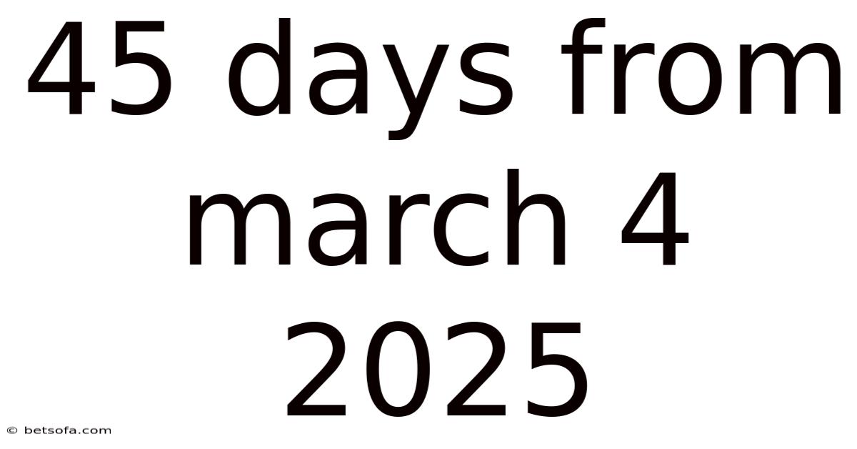 Imagine you're planning a significant event, a project deadline, or a personal milestone. Knowing exactly when 45 days from March 4, 2025 falls can be crucial for your planning and preparation. This article will guide you through understanding how to calculate this date, its significance, and how to apply this knowledge effectively.