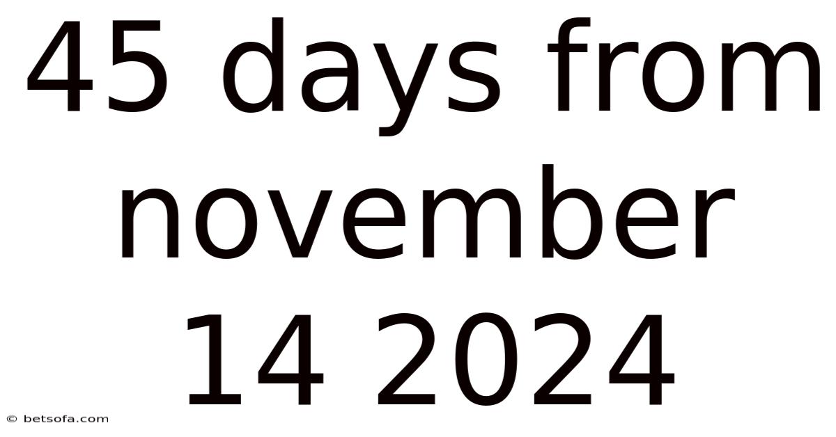 Worth adding, the 45 days from November 14, 2024, marks a significant milestone. Still, this date is not just a number; it represents a turning point where you can reassess your progress, adjust your strategies, and set new goals. By focusing on this specific timeframe, you can harness the power of consistency and discipline to achieve your desired outcomes Not complicated — just consistent..