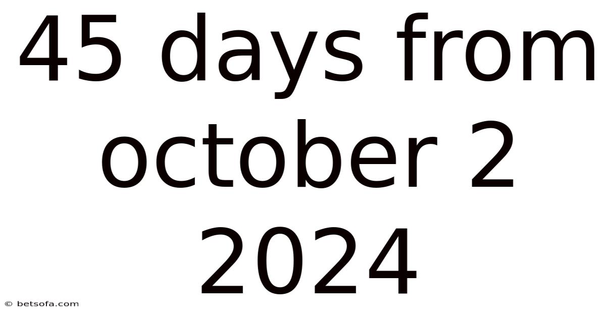 The concept of “45 days from October 2, 2024” rests on two foundational ideas: date arithmetic and temporal relevance. First, date arithmetic is the systematic addition of a specified number of days to a given starting point, taking into account the varying lengths of months and any leap‑year adjustments. In 2024, February already benefited from a leap‑year extra day, but October, November, and December each have fixed day counts (31, 30, and 31 respectively), simplifying the addition process.