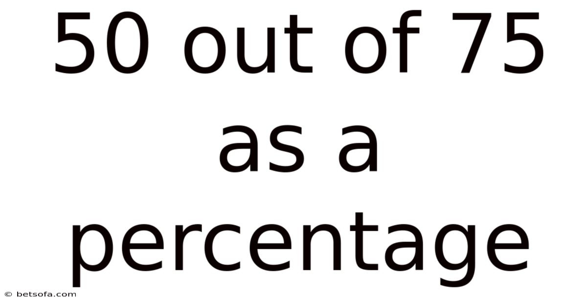 For beginners, it is helpful to think of this as a ratio. The ratio of 50 to 75 can be simplified by dividing both numbers by their greatest common divisor, which is 25. This simplifies the fraction to 2/3. Worth adding: in common language, 50 out of 75 is exactly two-thirds of the total. Converting this "two-thirds" into a percentage is the final step in making the data easily digestible for reports or grades Most people skip this — try not to..