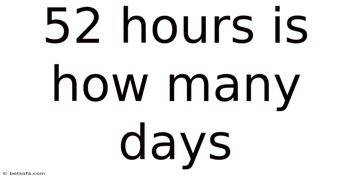 - Confusing Hours with Days in Different Contexts: Sometimes, people might think of "52 hours" as a day in a specific context (like a "long day"), but this is metaphorical, not literal. The conversion must be based on the standard 24-hour day.