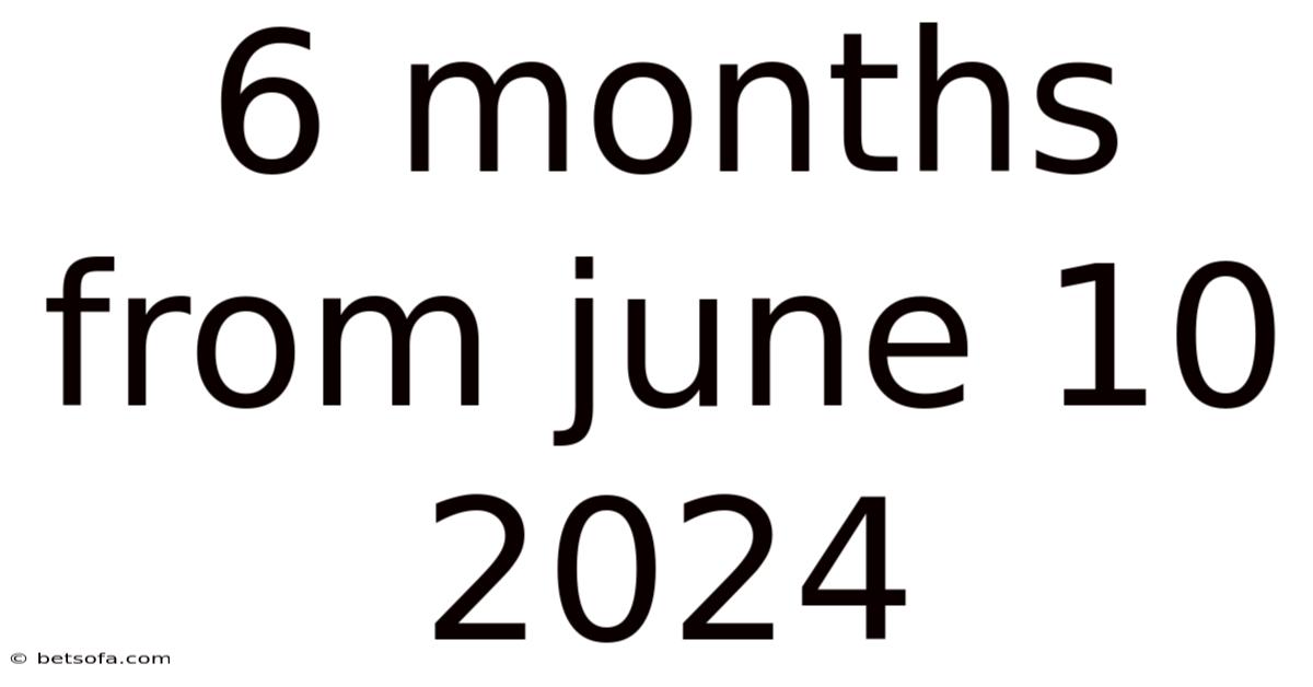 Q: What is 6 months from June 10, 2024? A: Six months from June 10, 2024, is December 10, 2024.