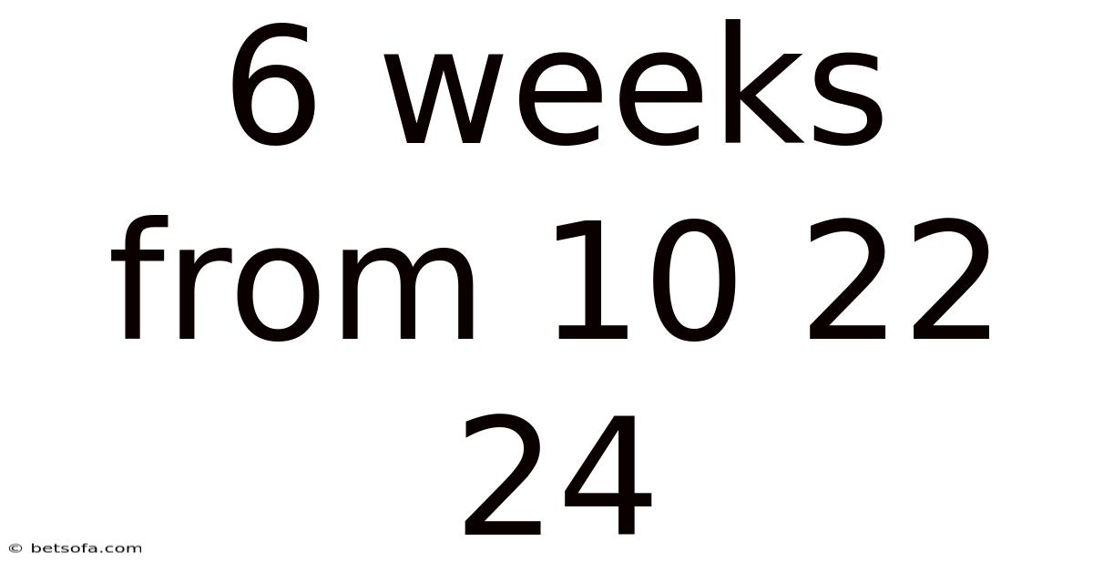 In the nuanced tapestry of modern planning and temporal organization, the concept of 6 weeks from 10 22 24 emerges as a precise and powerful tool for structuring future actions. This specific phrase denotes a calculated duration—a period of exactly forty-two days—projected forward from a fixed starting point identified by the numerical sequence "10 22 24.So " While the initial string may appear cryptic, it typically functions as a coded representation of a date, often October 22, 2024, adhering to a common month-day-year format. The significance of calculating this endpoint lies not merely in the arithmetic of days, but in its application for deadline-driven scenarios, project management milestones, and personal goal achievement. Understanding how to handle this timeline allows individuals and organizations to move from abstract intention to concrete execution, transforming a simple calculation into a strategic roadmap for success.