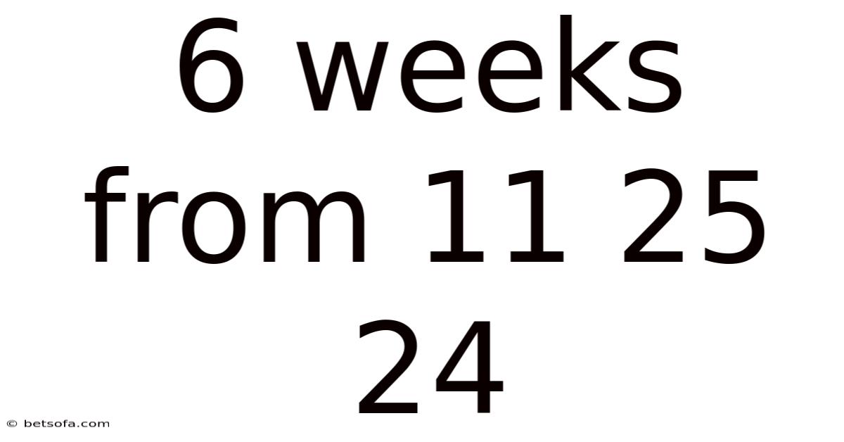The phrase “6 weeks from 11 25 24” is shorthand for “the date that occurs six calendar weeks after November 25, 2024.” A week consists of seven days, so six weeks equal 42 days. Understanding this simple conversion is the foundation for any timeline that hinges on a six‑week horizon, whether you’re scheduling a product launch, planning a vacation, or tracking a fitness transformation.