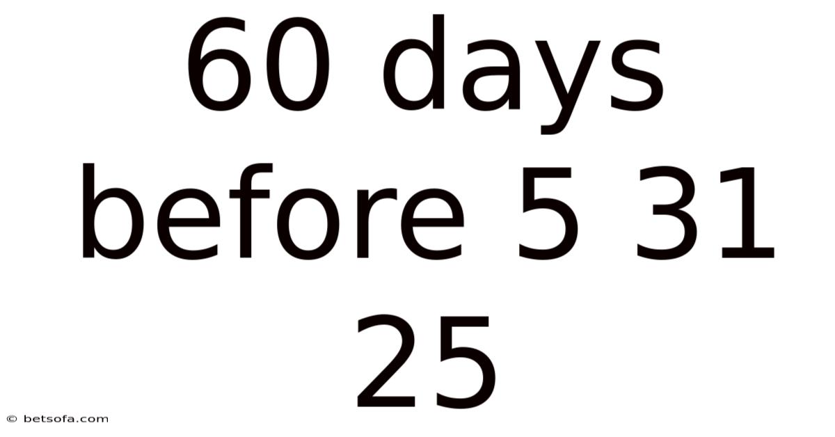 Let's break down the calculation of "60 days before 5 31 25" in a clear, step-by-step manner: