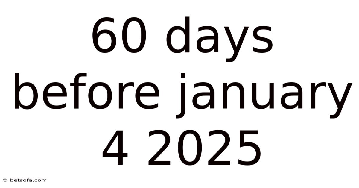 At its core, “60 days before” is a relative date expression. Here's the thing — instead of stating an absolute calendar day, it tells you to move backward on the timeline by a fixed number of days. In real terms, the reference point here is January 4 2025. To find the target date, you subtract 60 days from that reference Worth keeping that in mind..