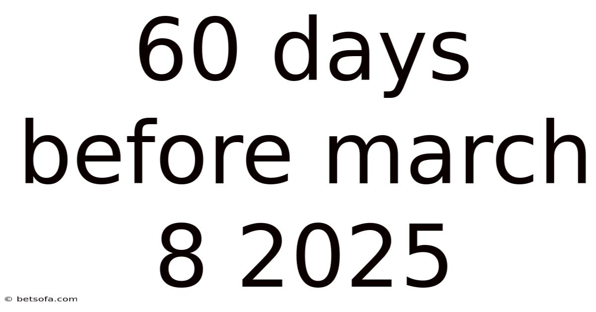 The calculation of 60 days before March 8, 2025, is an exercise in modular arithmetic applied to a non-uniform system. Unlike the metric system, where everything is based on powers of ten, the calendar mixes base-7 (weeks), base-28/29/30/31 (months), and base-365/366 (years) The details matter here..