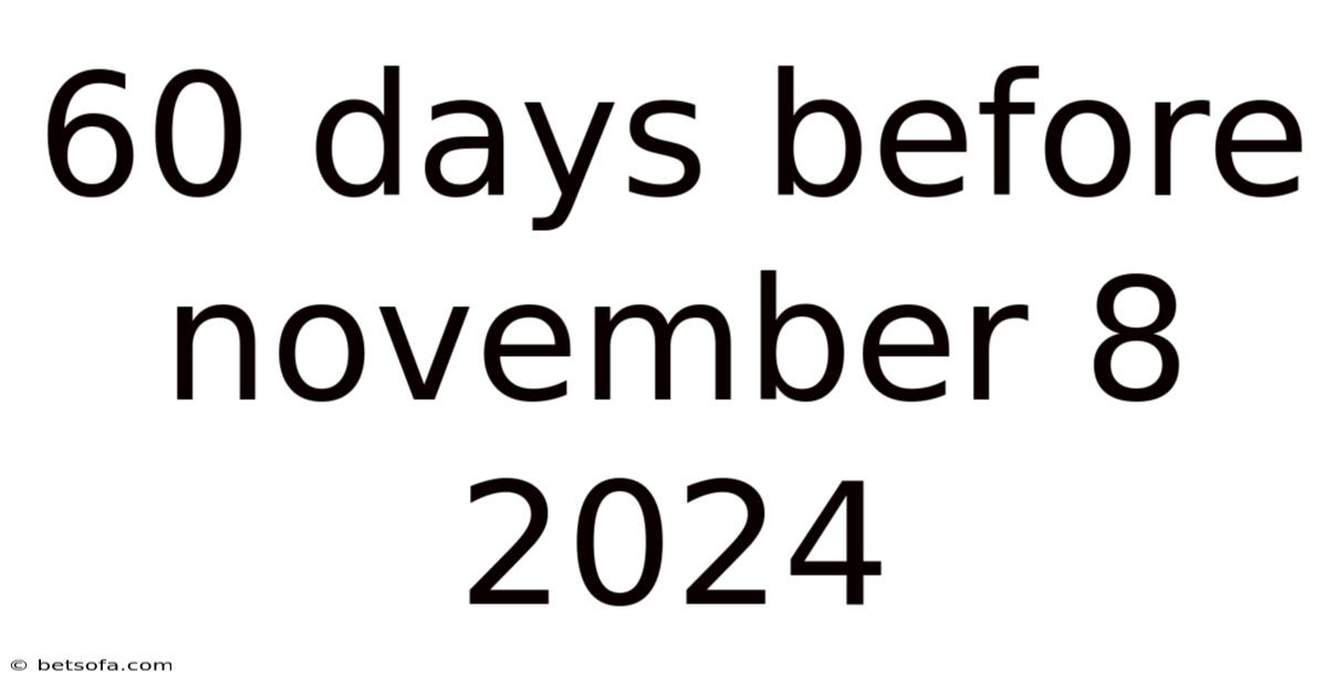 To wrap this up, "60 days before November 8, 2024" refers to September 9, 2024, a date that holds significance in various contexts. By breaking down the concept, providing real-world examples, and addressing common mistakes, this article has aimed to offer a comprehensive understanding of the topic. Plus, whether for academic, business, or personal planning, understanding this timeline can aid in effective time management and goal achievement. Remember, the key to successful planning is not just knowing the dates but also understanding their implications and using them to your advantage.