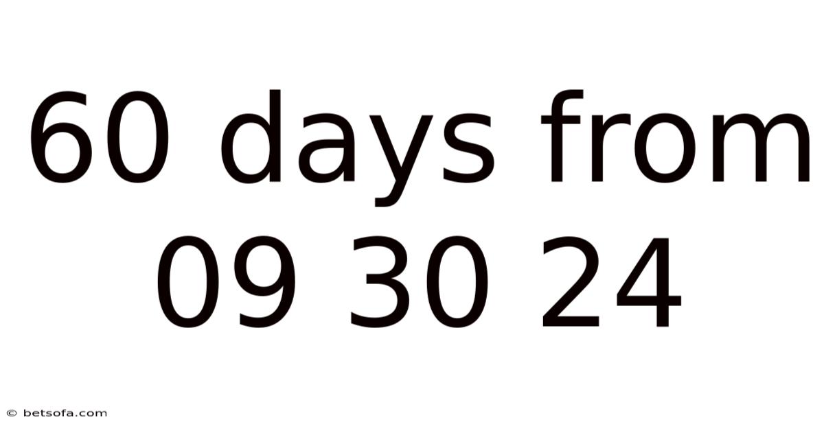 The phrase is a directive to take the calendar date September 30, 2024 (written in the compact “MM DD YY” format as 09 30 24) and advance it by sixty full days. The result is a future date that is exactly two months—or roughly one‑sixth of a year—later, assuming the Gregorian calendar we use today.