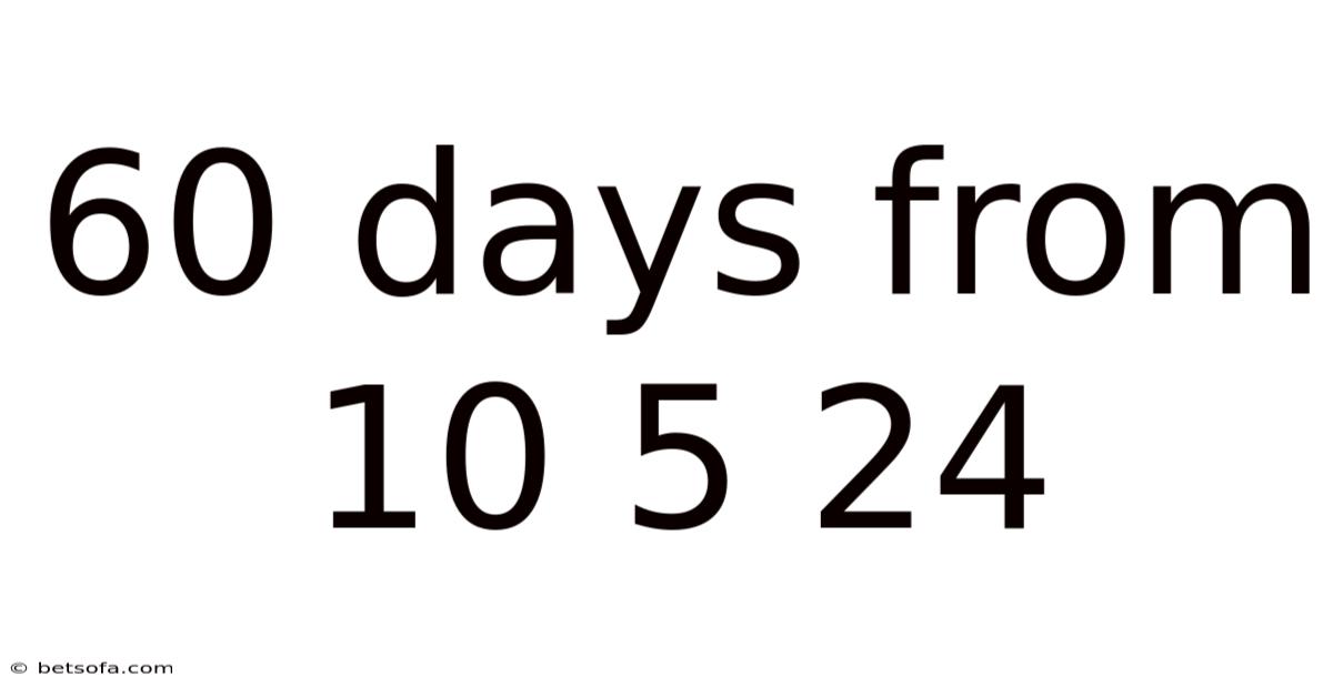 At its core, the phrase "60 days from 10 5 24" refers to finding the calendar date that falls exactly sixty 24-hour cycles after a specified starting date. The notation "10 5 24" is a common, though regionally variable, shorthand for the date May 10, 2024 (in a Month/Day/Year format). The result of this calculation is July 9, 2024. However, arriving at this answer correctly requires navigating the variable lengths of months, the quirks of the Gregorian calendar, and the potential for human error in manual counting. Mastering this calculation empowers individuals and organizations to create reliable schedules, set realistic expectations, and maintain accountability for time-bound commitments.
