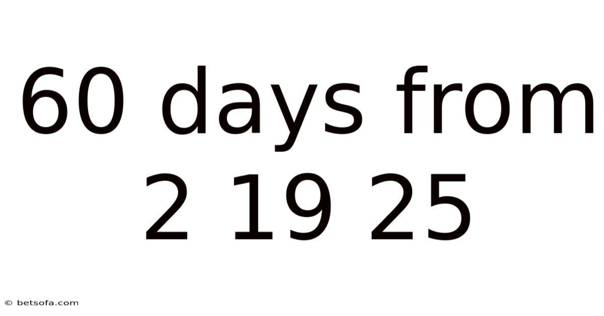 The phrase "60 days from 2 19 25" might seem like a simple numerical calculation at first glance, but it carries significant implications depending on the context in which it is used. In practice, whether you're planning a project, setting a personal goal, or managing a deadline, understanding how to calculate 60 days from a specific date is a fundamental skill. In this article, we will explore the concept of "60 days from 2 19 25" in depth, breaking down its meaning, practical applications, and the nuances involved in such calculations.