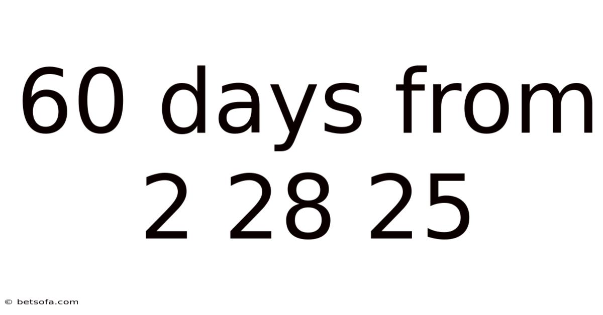Introduction When you see the phrase 60 days from 2 28 25, you are looking at a simple yet powerful way to pinpoint a future date. In this context, “2 28 25” represents February 28, 2025 (month‑day‑year shorthand). Adding sixty calendar days to that starting point lands you on April 29, 2025. Understanding how to calculate and apply this interval can help you plan projects, set deadlines, track milestones, and avoid costly scheduling errors. This article walks you through the exact calculation, explains why the 60‑day window matters, and equips you with practical tools to use it confidently in personal or professional contexts.