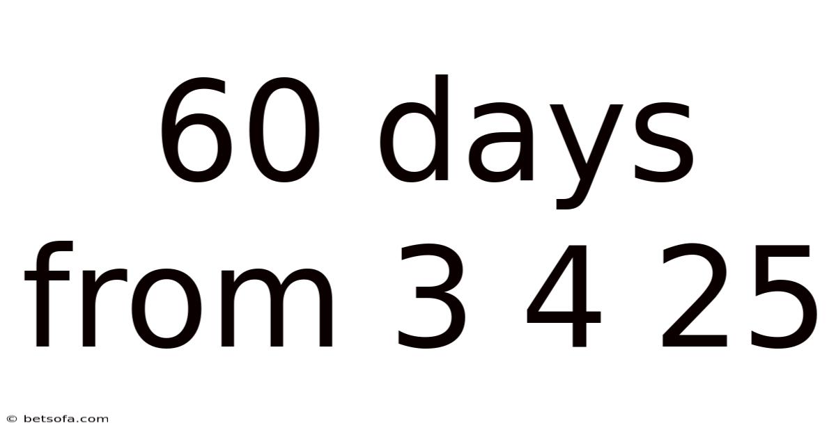 Understanding how to calculate "60 days from 3 4 25" is a valuable skill that aids in effective planning and time management. By carefully considering the number of days in each month and using a step-by-step approach, you can accurately determine future dates. Whether for business, legal, or personal purposes, mastering date calculations ensures that you meet deadlines and stay organized. In real terms, always remember to double-check your work and use reliable tools to avoid common mistakes. With practice, these calculations will become second nature, empowering you to manage your time with confidence.