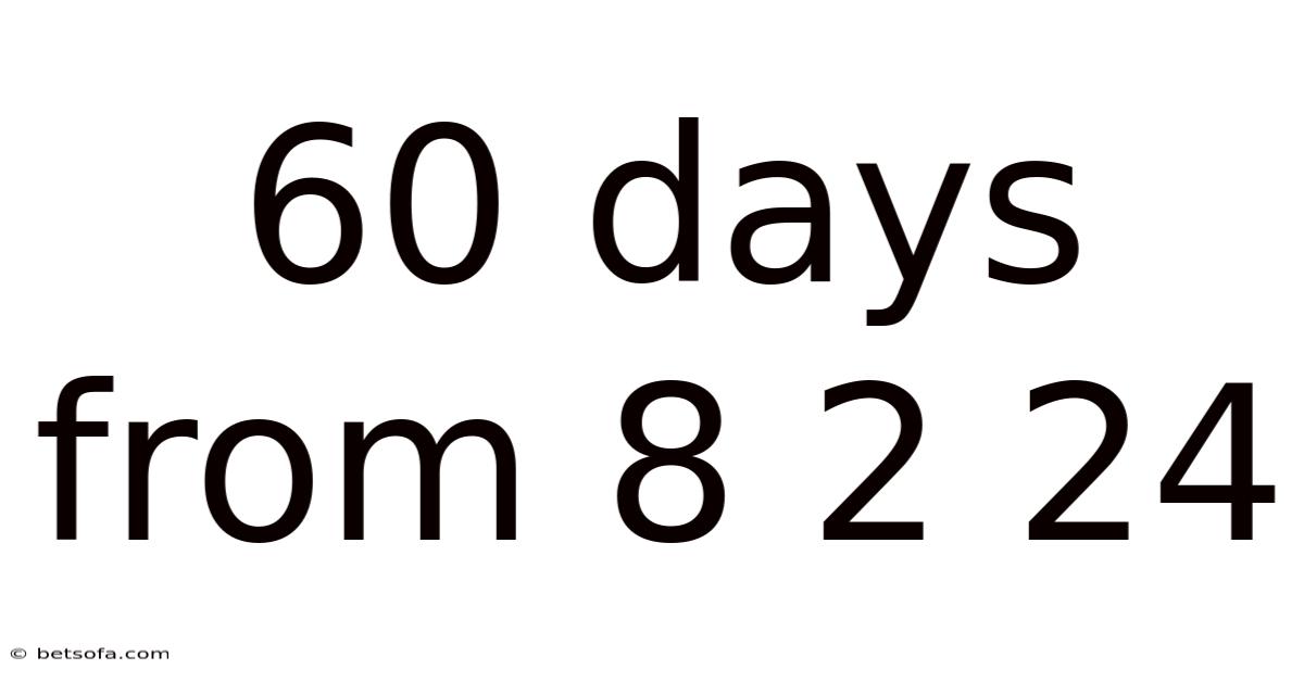 60 daysfrom 8 2 24 is a phrase that instantly signals a countdown: it asks you to look exactly two months forward from August 2, 2024. In the United States date format, “8 2 24” translates to 08/02/2024, while in many other regions it would be read as 02/08/2024 (2 August 2024). Regardless of the regional convention, the core idea remains the same—adding a sixty‑day interval to a specific calendar date. This simple arithmetic can become a powerful planning tool, whether you’re setting personal milestones, launching a product, or mapping out an academic project. In this article we’ll unpack the meaning behind “60 days from 8 2 24,” walk through how to calculate it accurately, explore practical applications, and address the most common misunderstandings that can derail your timeline.