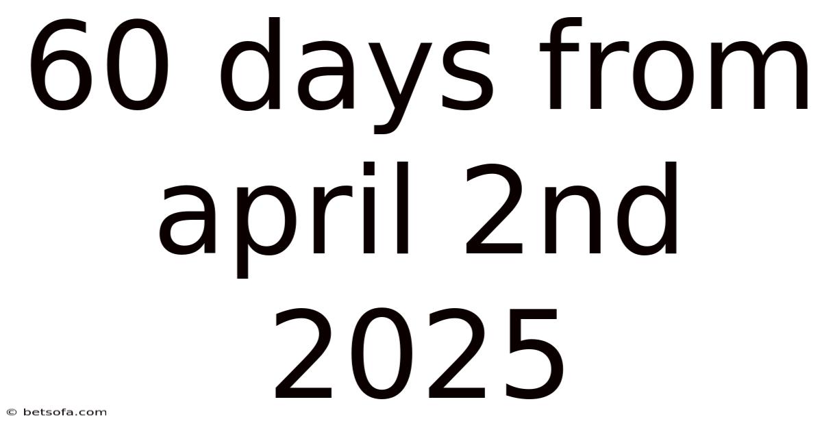 Defining the core keyword, 60 days from April 2nd 2025, requires us to move beyond a simple date string and understand it as a duration-based query. Which means the starting point is fixed: April 2nd, 2025. Also, the duration is fixed: sixty full 24-hour cycles. The output is a destination date that serves as a deadline, a milestone, or a point of evaluation. On top of that, this concept is vital because it transforms an abstract amount of time into a concrete target on the calendar, allowing for strategic planning. Whether you are scheduling a long-term marketing campaign, planning a fitness regimen, or organizing a complex project, the ability to accurately calculate and contextualize such a timeframe is essential for success Simple, but easy to overlook..
