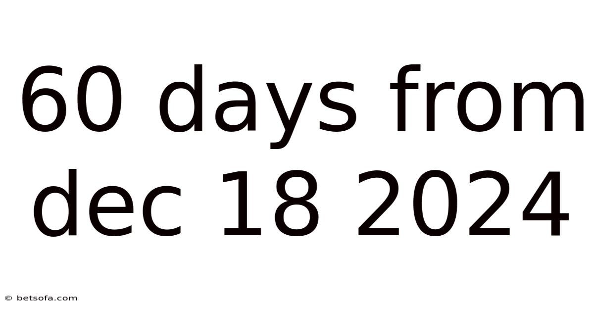 In the following sections, we will explore the detailed explanation of what "60 days from Dec 18 2024" entails, how to calculate it, and its relevance in various contexts. We will also examine real-world examples, common mistakes to avoid, and practical strategies for leveraging this timeframe effectively. By the end of this article, readers will have a comprehensive understanding of how this date can be utilized to achieve their goals with precision and confidence.
