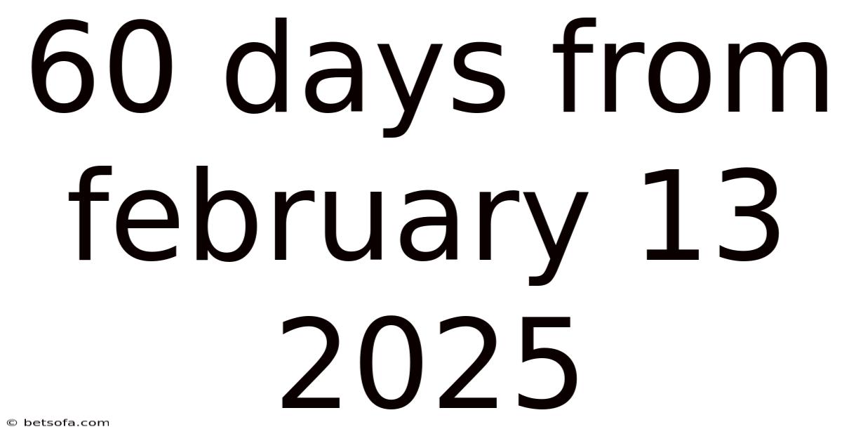 The phrase “60 days from February 13, 2025” refers to the calendar date that falls 60 days after the given start date, inclusive of the start day or not depending on context. That's why in most planning scenarios the start day is counted as day 0, meaning you add 60 days to reach the target date. February 13, 2025, is a Monday in a non‑leap year, so the extra days will push us into March and April. Understanding the exact date is useful for academic calendars, project timelines, travel itineraries, and even legal filing deadlines.