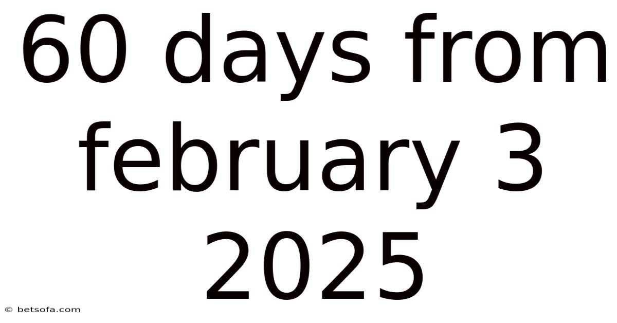 The phrase “60 days from February 3 2025” refers to a point in time that is exactly 60 calendar days after the starting date. Unlike business days or workdays, which exclude weekends and holidays, a plain day count includes every day—weekends, weekdays, and any special observances. This simple arithmetic is often required in legal contracts, project milestones, warranty periods, and event planning Simple as that..