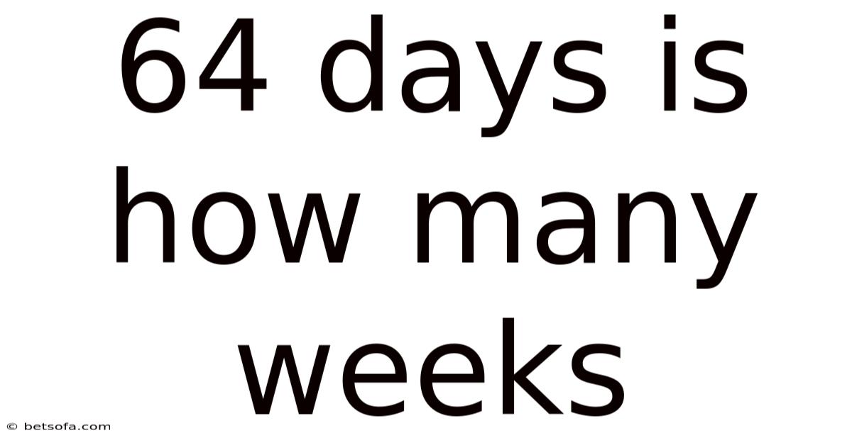 By the end of this article, readers will not only know the exact number of weeks in 64 days but also understand the broader context of time measurement. This knowledge can empower individuals to make informed decisions in both personal and professional settings. The following sections will break down the calculation, provide real-world examples, and address common misconceptions to ensure a comprehensive understanding of the topic.