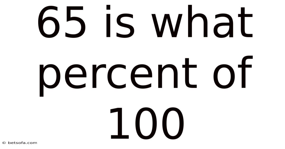 At its core, this calculation asks you to determine the relationship between a part and its corresponding whole. Which means the phrase 65 is what percent of 100 naturally leads to a straightforward mathematical operation, but the real value lies in understanding why the operation works and how it applies across different contexts. By breaking down the underlying principles, you will not only arrive at the correct answer but also build a mental framework that can be reused for any percentage problem Worth keeping that in mind..