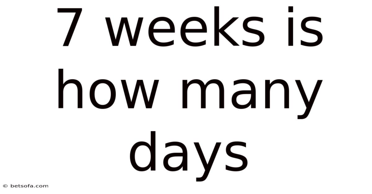 Q: How many days are in 7 weeks? A: 7 weeks is equal to 49 days. This is calculated by multiplying 7 weeks by 7 days per week Surprisingly effective..