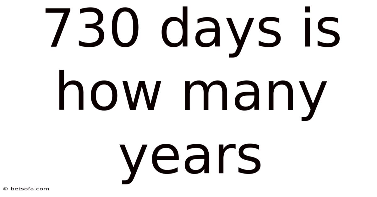 When we divide 730 by 365, we get approximately 2 years with a remainder. Also, this means that 730 days is roughly equivalent to 2 years and 5 days. On the flip side, this calculation can vary slightly depending on the specific calendar system in use It's one of those things that adds up. Nothing fancy..
