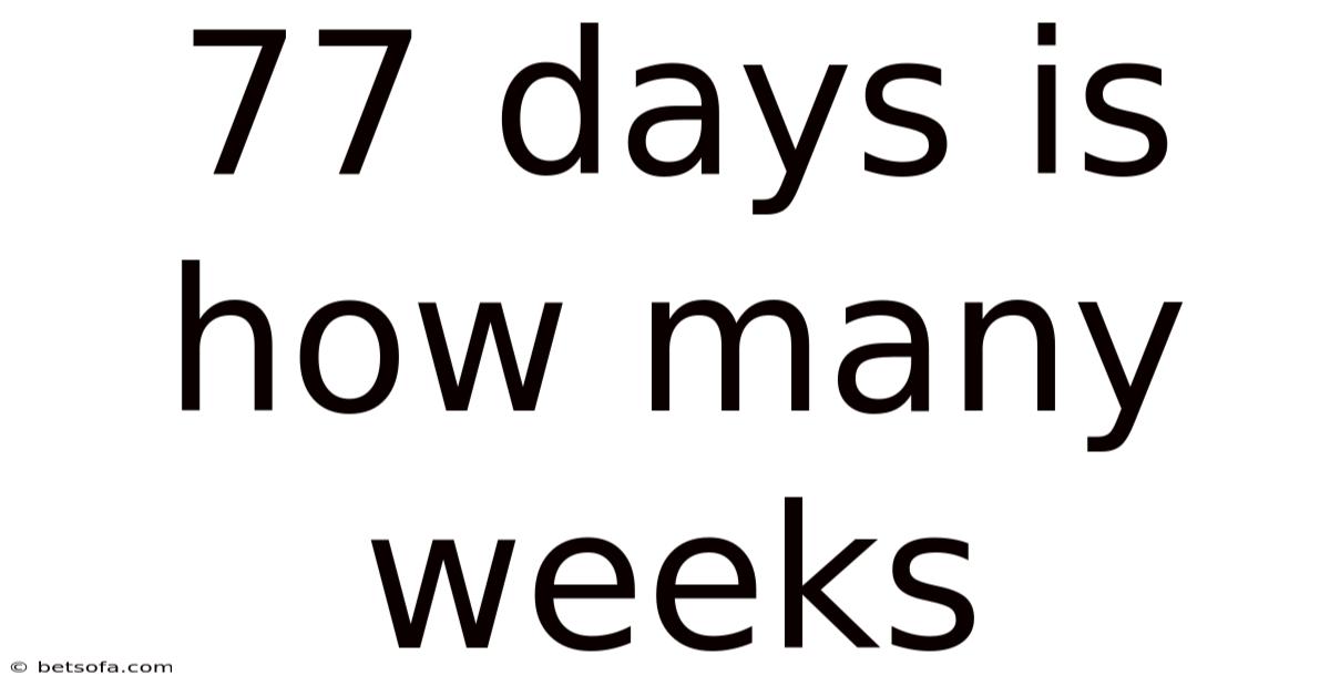 Simply put, 77 days is exactly 11 weeks when you divide the total days by the constant 7 days per week. This conversion is straightforward but powerful,