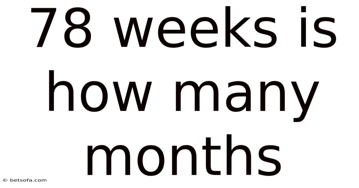 When you stumble upon a phrase like “78 weeks is how many months?Here's the thing — ”, it’s easy to feel a little lost in the sea of numbers. Still, most of us are accustomed to thinking in months or years, while weeks tend to belong to the realm of school schedules, project timelines, or pregnancy trackers. That said, converting weeks to months isn’t just a trivial math exercise; it helps you plan vacations, budget for long‑term projects, or simply understand how long a particular event will last. Because of that, in this article we will unpack the conversion process, explore why the answer isn’t always a whole number, and give you practical tools to translate 78 weeks into months accurately. By the end, you’ll be able to answer the question confidently and apply the method to any other week‑to‑month conversion you encounter.