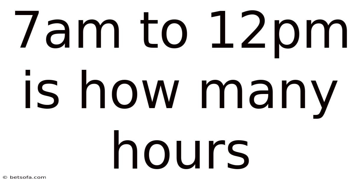 The phrase "7am to 12pm is how many hours" is more than just a statement—it’s a reminder of the power of early morning routines. During this time, the body is naturally alert, and the mind is fresh. Many people find that starting their day early helps them avoid the chaos of late-night distractions and early-morning stress. This article will look at the significance of this time window, offering practical insights and strategies to help you harness its benefits Simple as that..