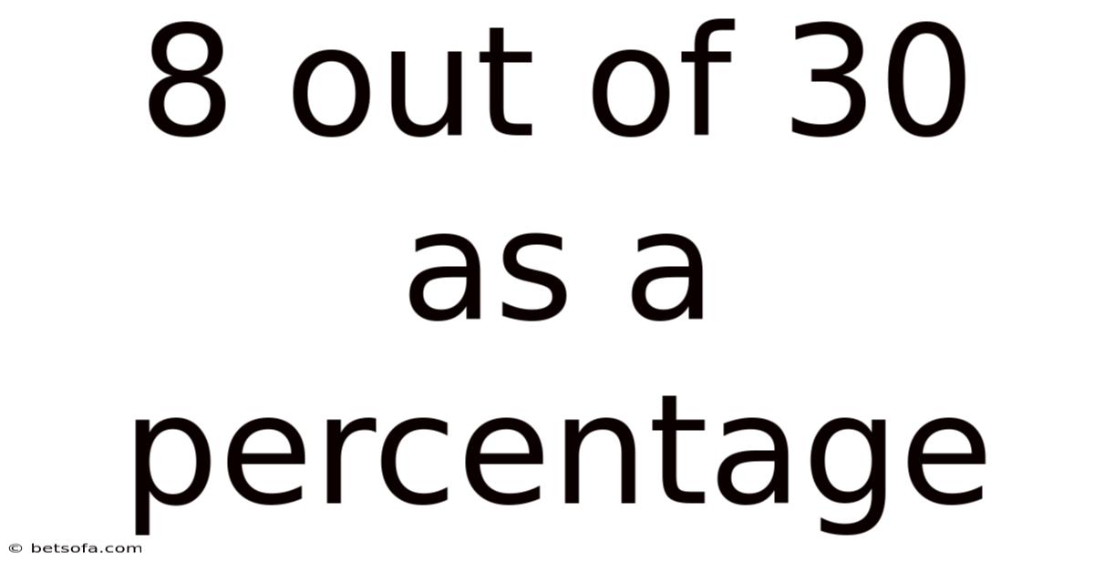When you see a fraction like 8 out of 30, the first instinct is often to wonder how large that portion really is. Day to day, converting the fraction to a percentage provides a clear, universally understood picture: it tells you exactly how many parts out of every hundred the original amount represents. Is it a tiny sliver, a respectable share, or something in between? In this article we will walk through everything you need to know about turning “8 out of 30” into a percentage, why the conversion matters in everyday life, and how to avoid common pitfalls along the way. By the end, you’ll be able to perform the calculation instantly and explain its significance to anyone who asks.