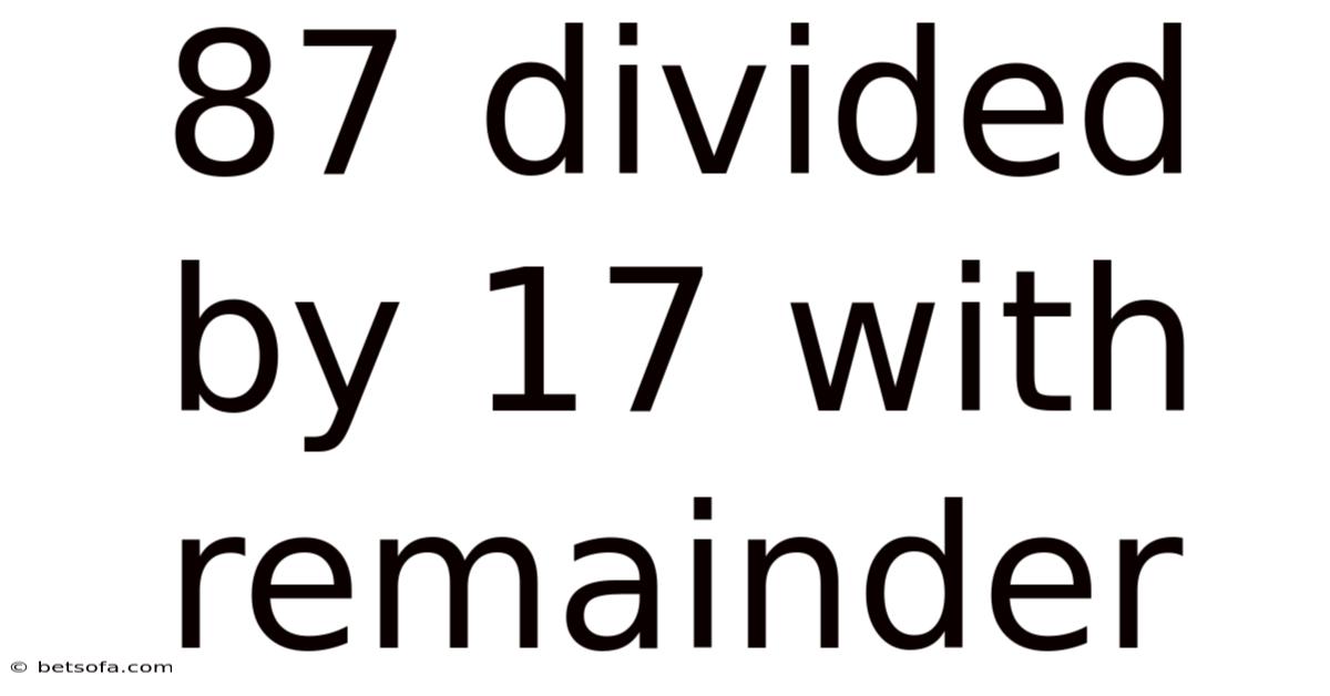 The mathematical concept of division with remainder serves as a foundational pillar in understanding numerical relationships between integers. At its core, "87 divided by 17 with remainder" encapsulates the interplay between divisors, dividends, and outcomes that define how numbers partition each other. This operation, often abstract at first glance, becomes tangible when examined through practical scenarios or mathematical principles. Take this case: envisioning how distributing 87 units evenly among 17 groups might involve calculating the base number of items per group and the leftover that cannot be fully allocated. Such a task not only tests arithmetic proficiency but also highlights the utility of remainders in solving real-world problems, from inventory management to cryptography. The ability to discern the remainder clarifies discrepancies and informs decision-making, making this operation a critical skill for both theoretical and applied contexts. By delving into its significance, we uncover how even seemingly simple calculations underpin complex systems, emphasizing the importance of mastering such fundamentals for effective problem-solving That's the part that actually makes a difference..