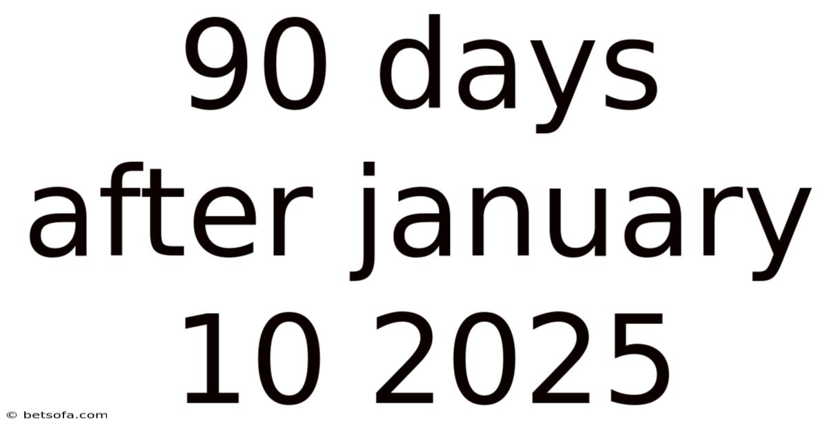 Q4: What is the significance of the date 90 days after January 10, 2025? A4: The significance of this date depends on the context. It could be a project deadline, a personal milestone, or any event that is planned to occur 90 days after January 10, 2025 Worth keeping that in mind..