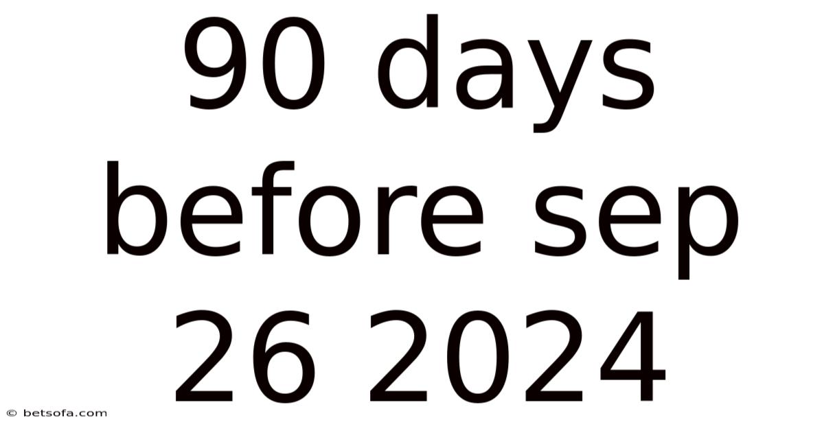 When you hear the phrase “90 days before September 26 2024,” you are looking at a very specific point in time – exactly three months prior to a key date that could be a deadline, an event, a product launch, or a personal milestone. In the world of project management, marketing, education, and even personal goal‑setting, counting down 90 days is a proven method for turning vague ambitions into concrete, achievable plans. This article explains what “90 days before September 26 2024” really means, why that three‑month window matters, and how you can harness it to stay organized, meet deadlines, and maximize results The details matter here. Worth knowing..