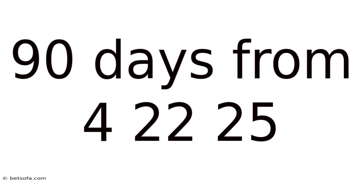 The core idea behind 90 days from 4 22 25 is straightforward: you start on the calendar date April 22, 2025 and add ninety consecutive days to arrive at a new date. To understand why this matters, consider the structure of the Gregorian calendar. April has 30 days, so after April 22, there are eight days left in that month. Adding those eight days moves you to April 30. The remaining days of the ninety‑day span then spill over into May, June, and possibly later months, depending on how many days each month contributes.