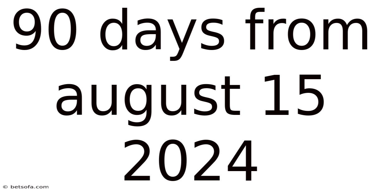 Time is one of our most valuable resources, and understanding how to calculate and make use of specific periods can be crucial for planning, goal setting, and meeting deadlines. On the flip side, when we consider "90 days from August 15, 2024," we're looking at a precise future date that falls on November 13, 2024. On the flip side, this three-month period represents a significant timeframe that can be utilized for various purposes, from business planning to personal development goals. Whether you're counting down to a project deadline, planning a fitness transformation, or organizing an event, knowing exactly how to calculate and interpret 90-day periods can provide structure and clarity to your planning process Surprisingly effective..