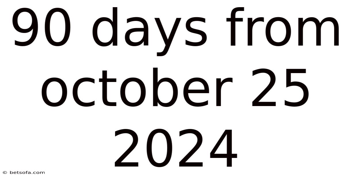 If you're wondering what date falls exactly 90 days after October 25, 2024, you've come to the right place. The date 90 days from October 25, 2024 is January 23, 2025. Calculating specific time intervals from a given date is a common need in both personal and professional contexts, whether you're planning an event, tracking a project deadline, or simply curious about future dates. This thorough look will walk you through the calculation process, explain the calendar system behind it, provide practical examples of how this date might be used, and address common questions about date calculations Less friction, more output..