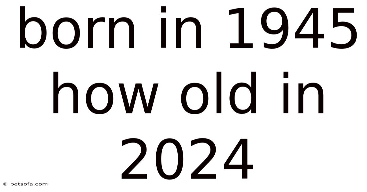 This article will explore the significance of being born in 1945 and how that translates to being 79 years old in 2024. In practice, we will dig into the historical context of that birth year, examine the implications of aging into this specific demographic, and analyze the cultural and technological landscape these individuals have navigated. Understanding this calculation provides a framework for appreciating the life experiences and perspectives of a cohort that bridges the gap between a pre-digital world and the modern era, offering valuable insights into resilience, adaptation, and the passage of time itself Simple, but easy to overlook..