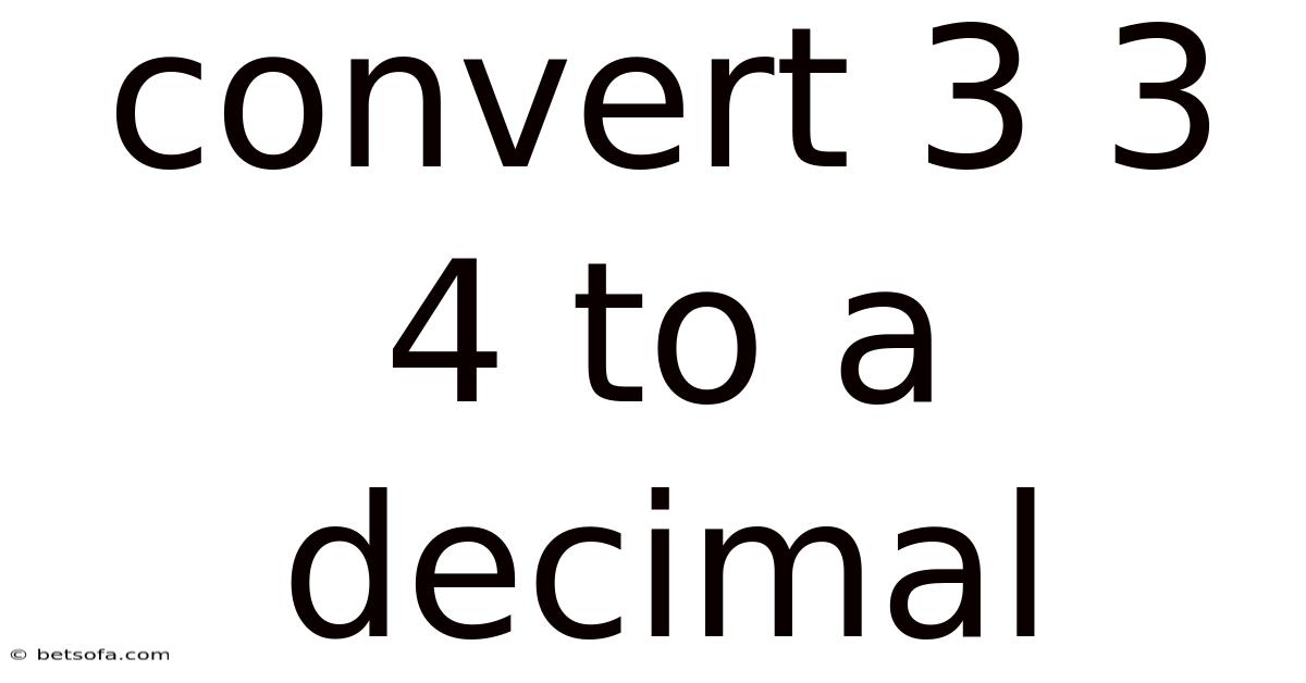Decimals are a convenient way to express numbers on a continuous number line. They simplify arithmetic operations—especially addition, subtraction, multiplication, and division—because computers and calculators natively handle decimal notation. Converting 3 3/4 to a decimal yields 3.75, a number that can be easily plotted, compared, or used in further calculations And it works..