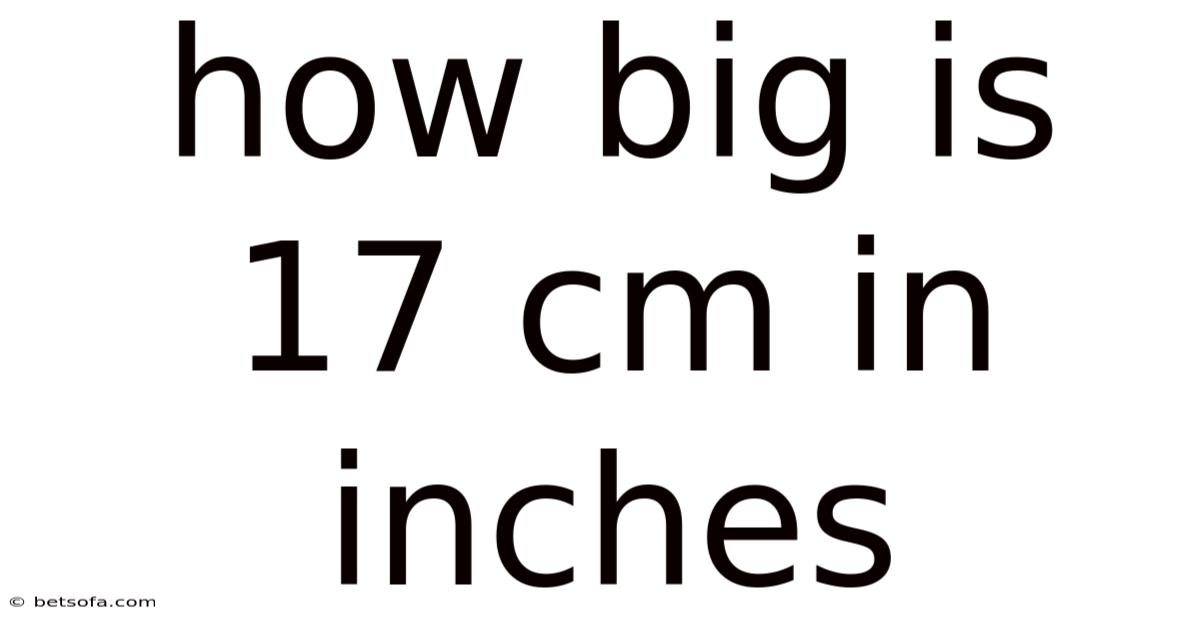 - Mental shortcut: Remember that 10 cm is roughly 4 inches. Which means, 17 cm sits a little more than 6½ inches (since 10 cm ≈ 4 in, 7 cm ≈ 2.8 in, and 0.5 cm ≈ 0.2 in). Adding those approximations gives you a quick estimate of about 6.8 inches.