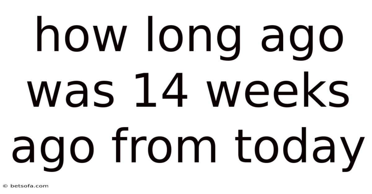 Determining how long ago 14 weeks was from today is a straightforward process once you understand the relationship between weeks and days, and how to account for the quirks of the calendar. Think about it: whether you're tracking a personal milestone, meeting a professional deadline, or simply satisfying curiosity, knowing how to make this calculation accurately is a valuable skill. Remember to always double-check your math, especially when crossing month or year boundaries, and don't hesitate to use digital tools for extra precision. By mastering this simple time calculation, you'll be better equipped to manage schedules, reflect on past events, and plan for the future with confidence.