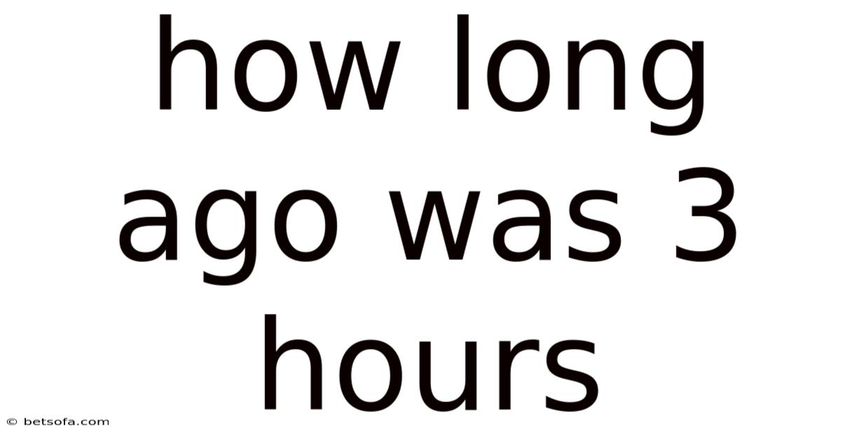 The concept of time often evokes a sense of mystery or unease, particularly when confronted with abstract notions like "how long ago was 3 hours." This question strikes a chord because time is a fluid, subjective experience shaped by individual perception, context, and cultural norms. While 3 hours may seem like a mere duration, its implications extend far beyond simple arithmetic; it represents a threshold where familiarity with time shifts, memory becomes strained, and even the present moment feels transient. Understanding this query requires navigating the interplay between biological, psychological, and societal factors that define our relationship with time. For many, the passage of 3 hours feels like a fleeting pause, a brief respite before the inevitable progression toward the next phase of life. Yet, for others, it might mark a central moment—a reminder of mortality, a milestone in personal growth, or a catalyst for decision-making. This article looks at the multifaceted nature of time perception, exploring why a mere three-hour span holds such significance while challenging conventional assumptions about its universality. By examining the interplay of memory, cognition, and societal expectations, we uncover how even seemingly insignificant intervals can carry profound weight, shaping our understanding of existence itself.