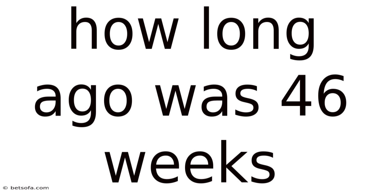 The phrase "how long ago was 46 weeks" is a common time-based question that often arises in personal, academic, or professional contexts. Whether you're calculating a past event, planning for the future, or simply curious about a specific date, understanding how to determine the exact time frame from 46 weeks ago is essential. Which means this article will break down the process, explain the underlying concepts, and provide practical examples to help you master this skill. By the end, you'll have a clear understanding of how to calculate and contextualize 46 weeks in the past.